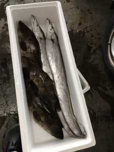 太刀魚1.4㎏位㎏3500円、活〆クエ1.8㎏位㎏5800円、活〆フエ鯛1.5㎏位㎏5000円!天然カンパチ4㎏アップて㎏3000円!1サクからでも販売いたします!