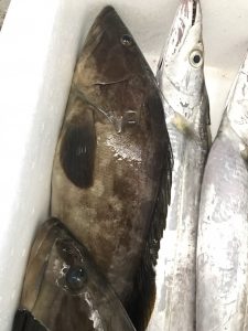 うっかりかさご1㎏アップ㎏2400円、黒むつ250~300g位㎏2400円、活〆コロ鯛1.4㎏サイズ㎏1500円、活〆天然カンパチ1.5㎏位㎏2200円にて販売します!