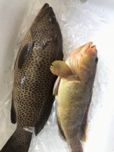 活〆オオモンハタ1.2㎏で㎏3500円、活〆天然カンパチ1㎏アップ㎏2500円、あおはた500gサイズ㎏1800円、かいわり300~500gサイズ㎏1450円にて販売します!